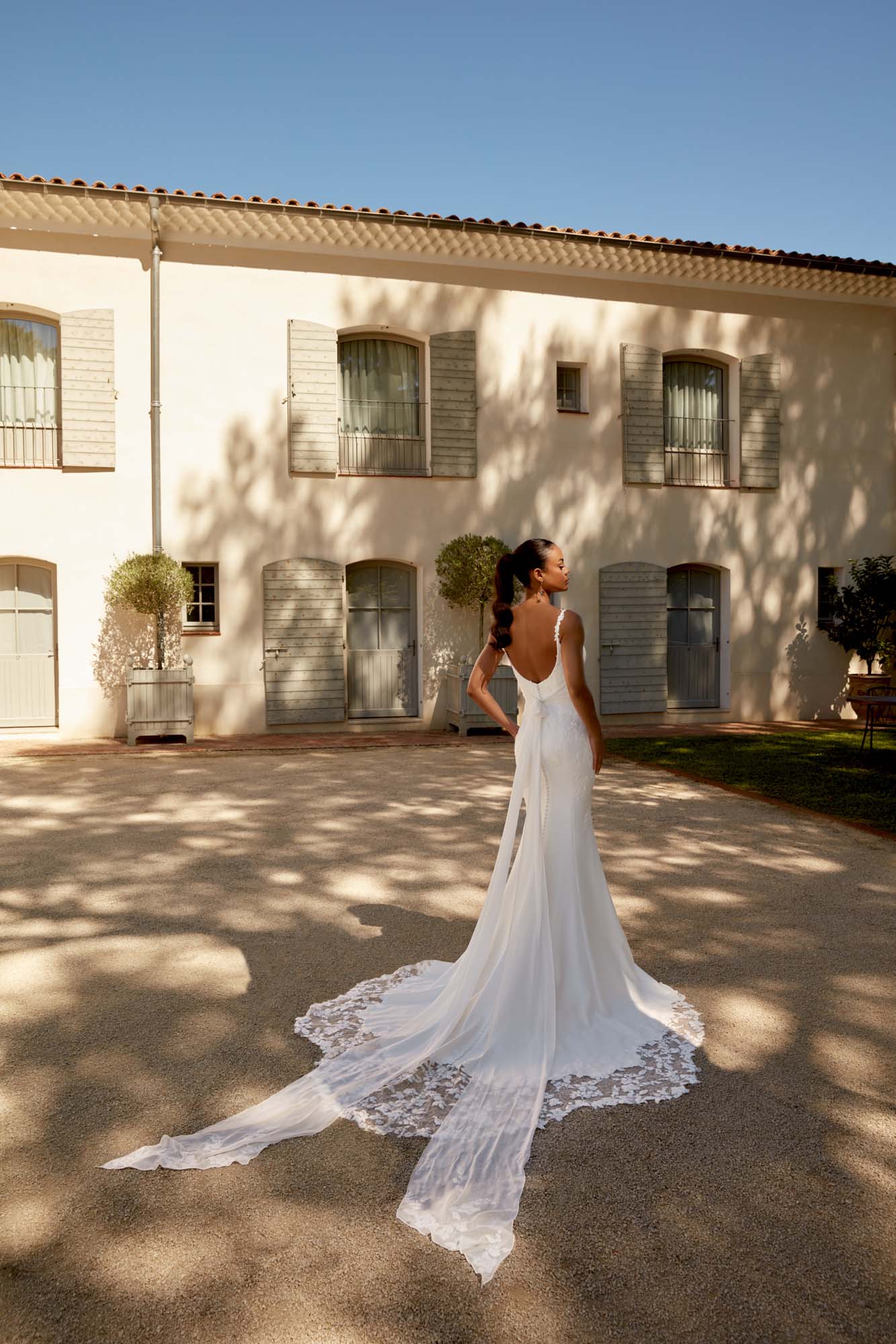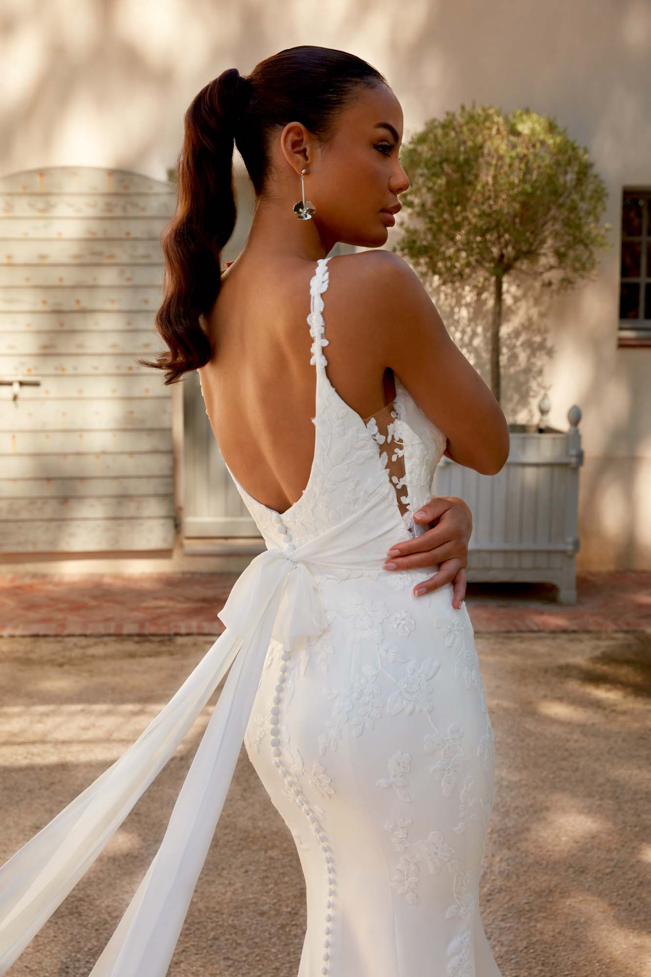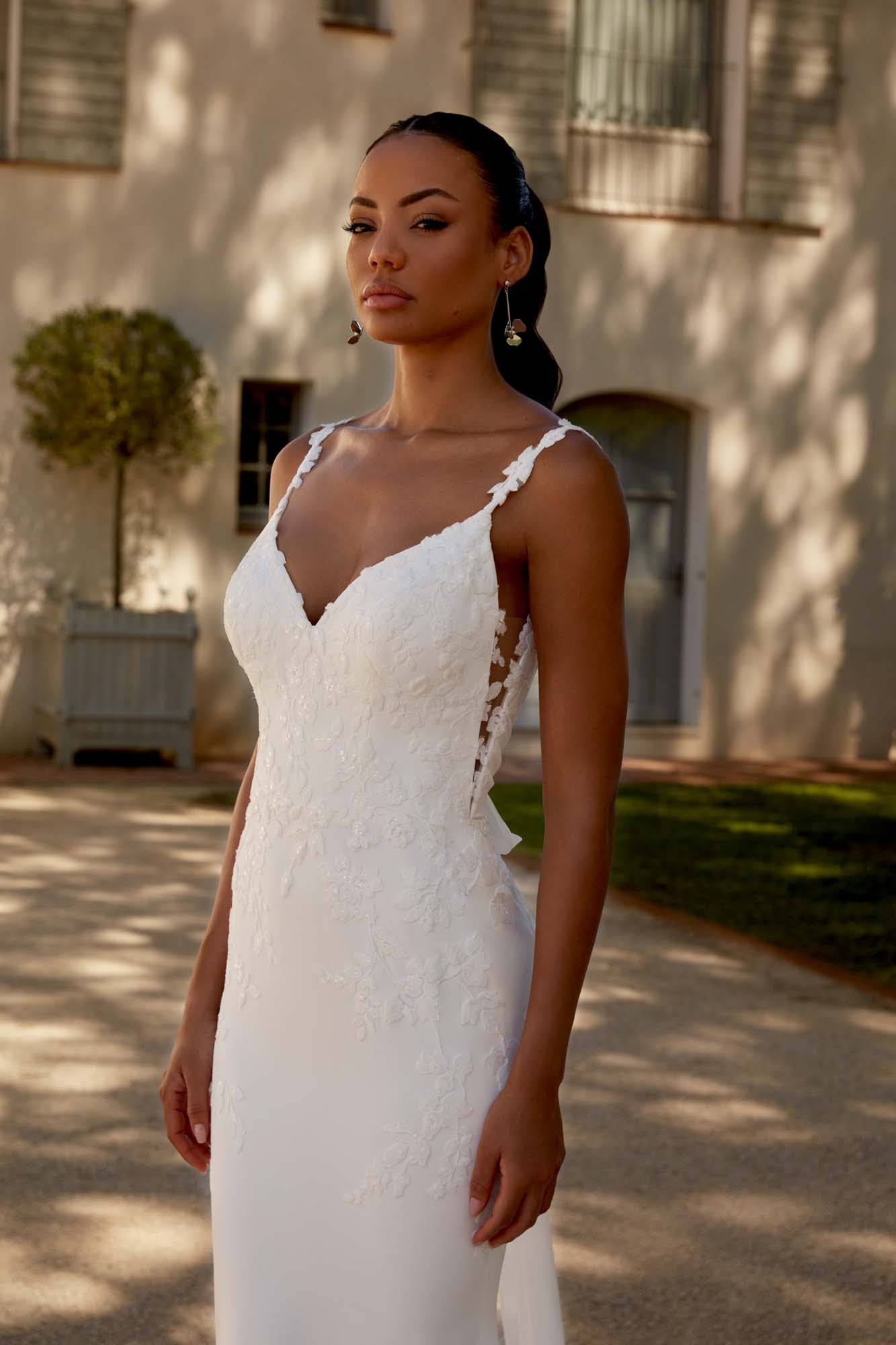 DESCRIPTION : Dress FABRIC : Sequined Lace Appliques, Chiffon, Tulle, Stretch Crepe, Jersey Lining OPTIONS : L, PT