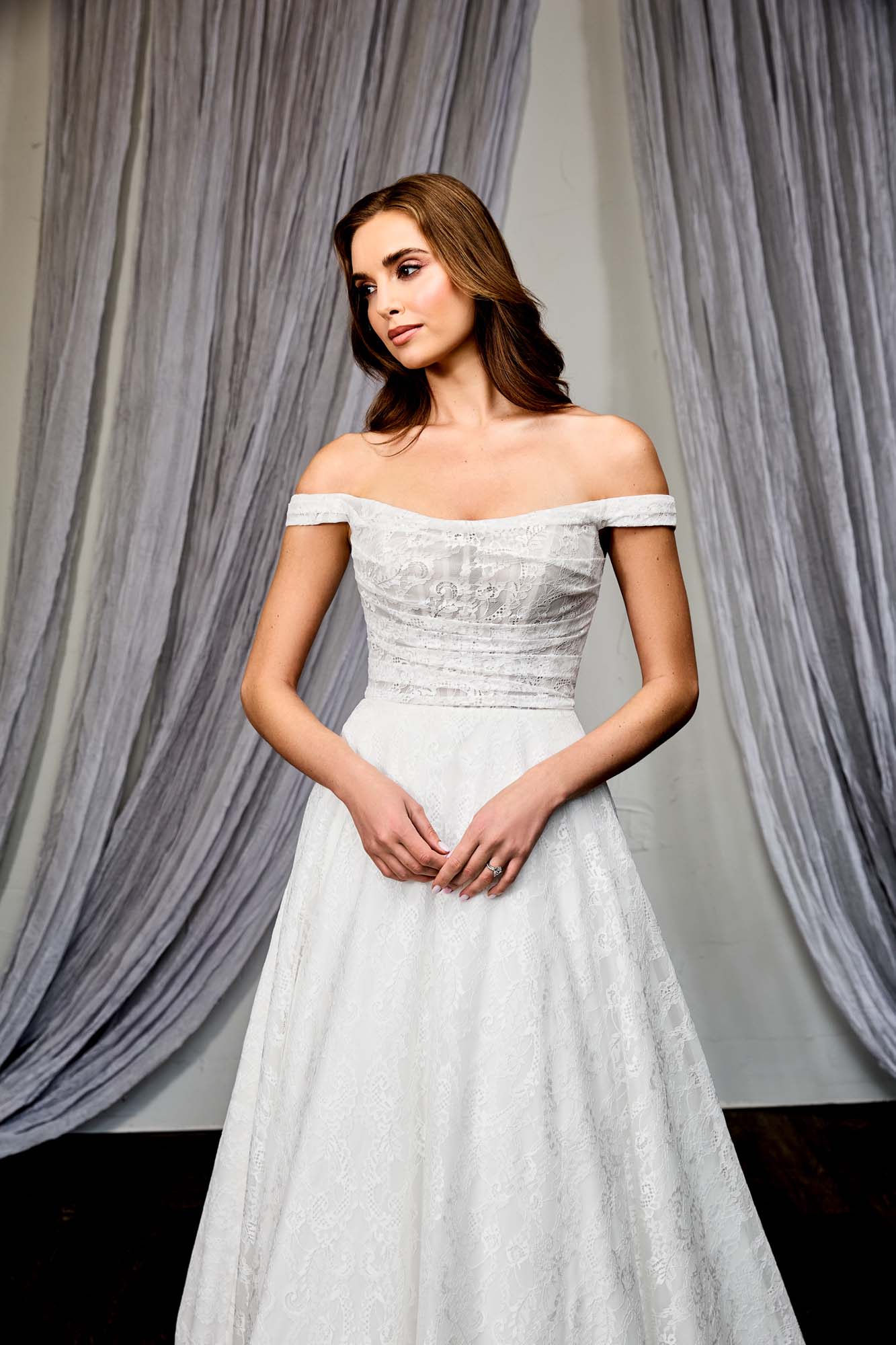 DESCRIPTION : Dress with Fully Lined Bodice & Straps FABRIC : Tulle, Woven Lining, Allover Chantilly Lace, Hard Net OPTIONS : U