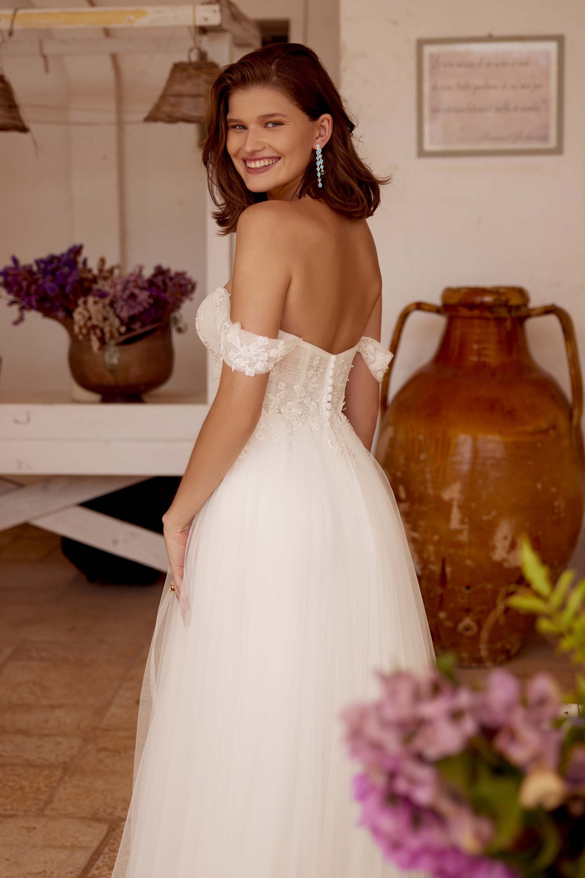 Dress and Detachable Straps with Unlined Bodice FABRIC : Jersey Lining, Organza, Tulle, Beaded Lace Appliques, Pearl Beading Options : L