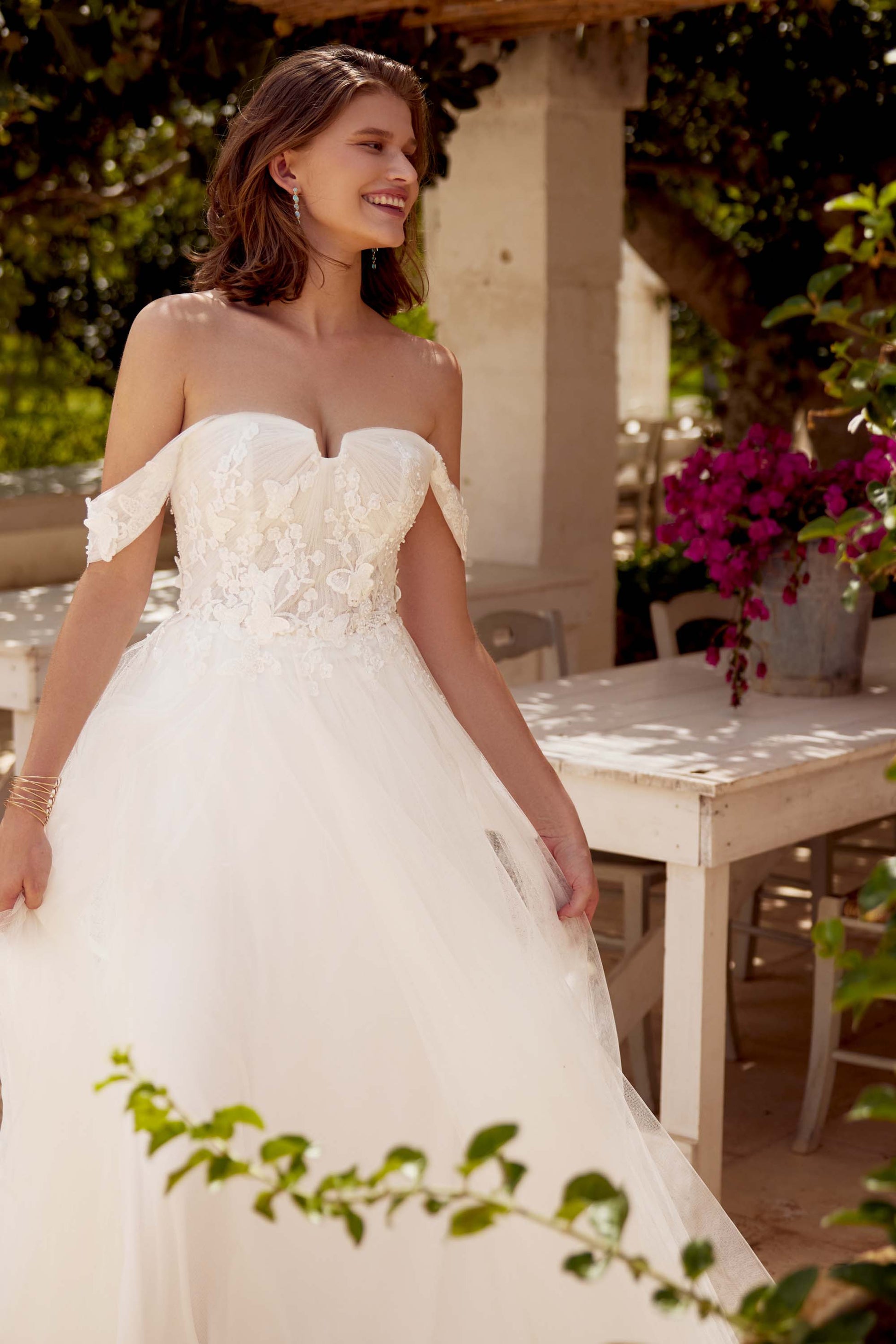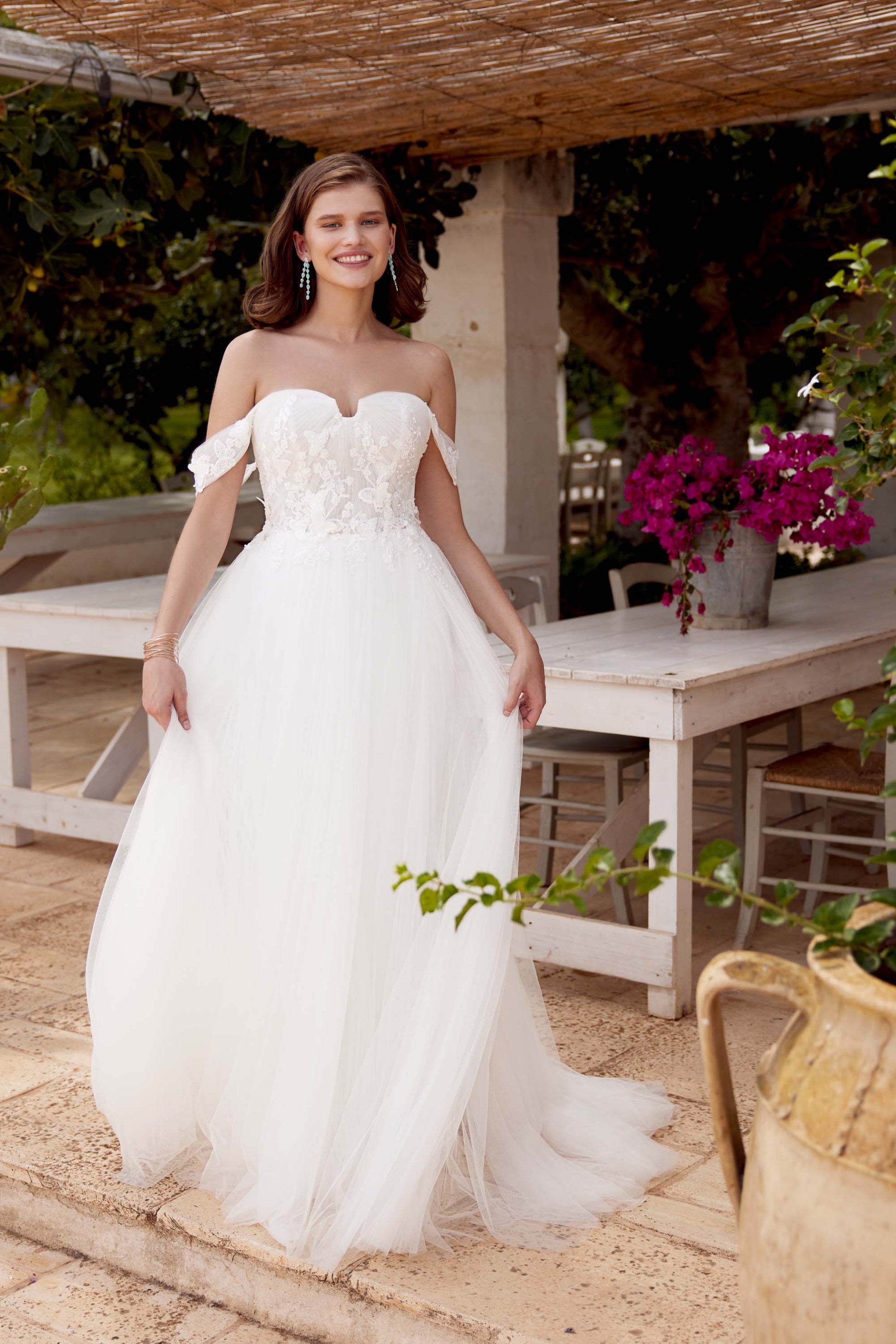 Dress and Detachable Straps with Fully Lined Bodice FABRIC : Jersey Lining, Beaded Lace Appliques, Tulle, Pearl Beading Options : L