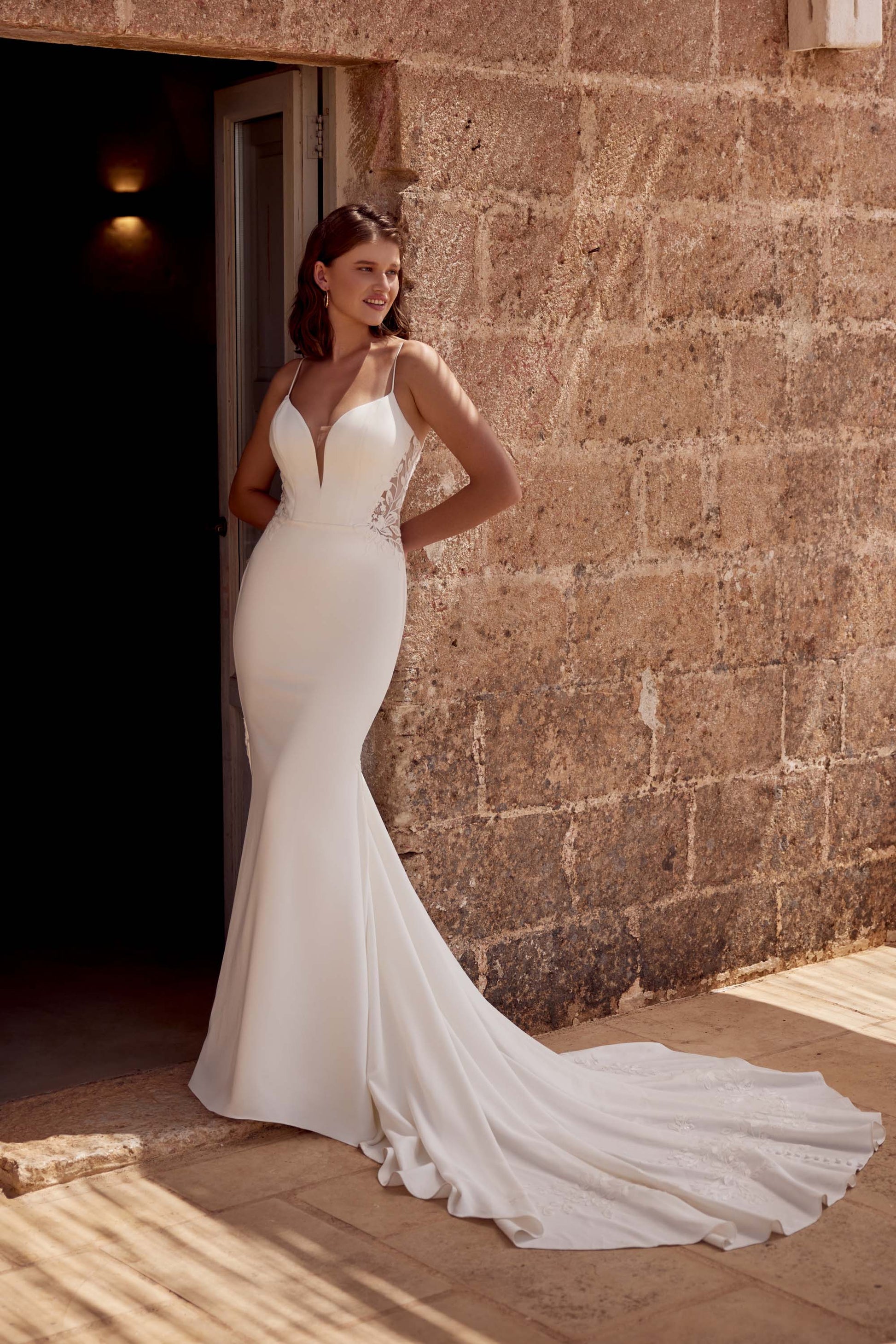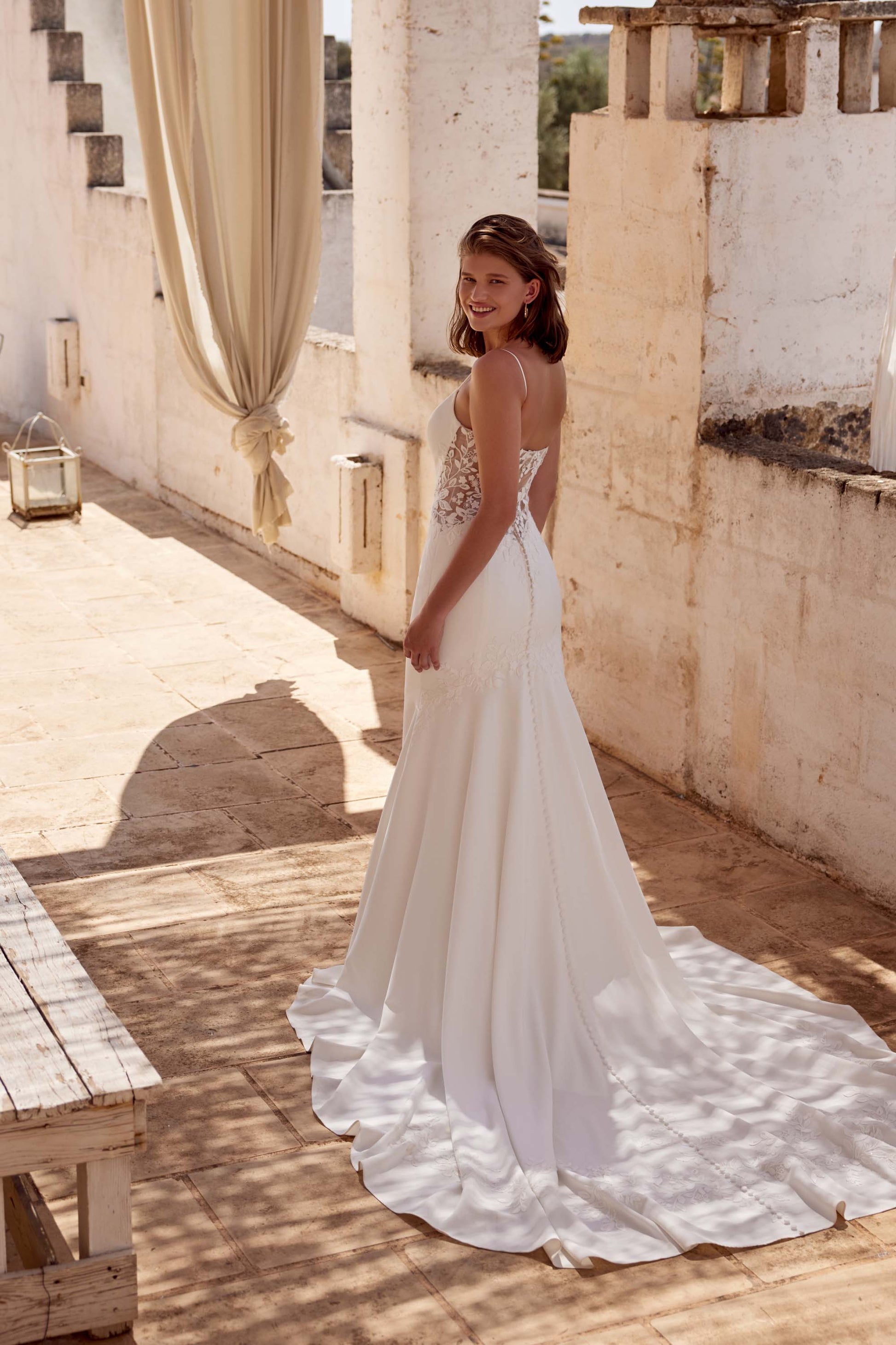 Dress with Raised Neckline FABRIC : Sequined Lace Appliques, Tulle, Jersey Lining, Stretch Crepe Options : L, PT