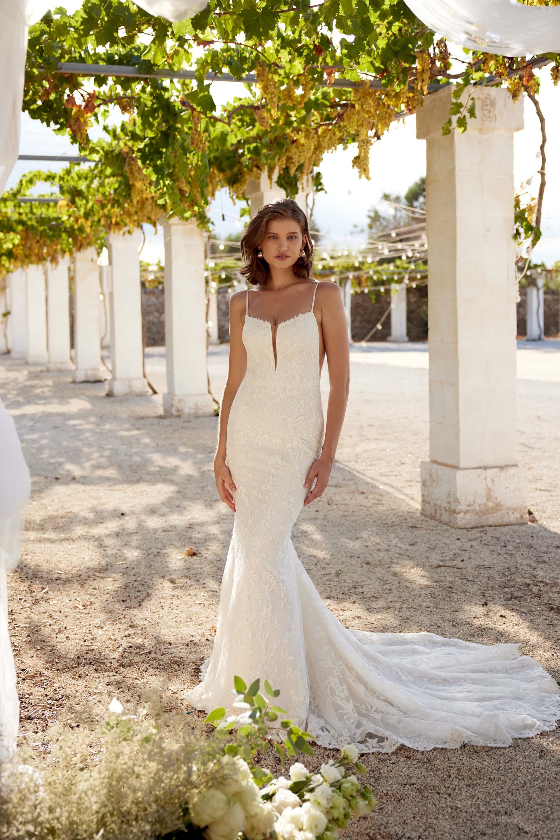 Dress with Plunging Neckline FABRIC : Tulle, Cotton Lace Embroidery, Jersey Lining Options : PT, U
