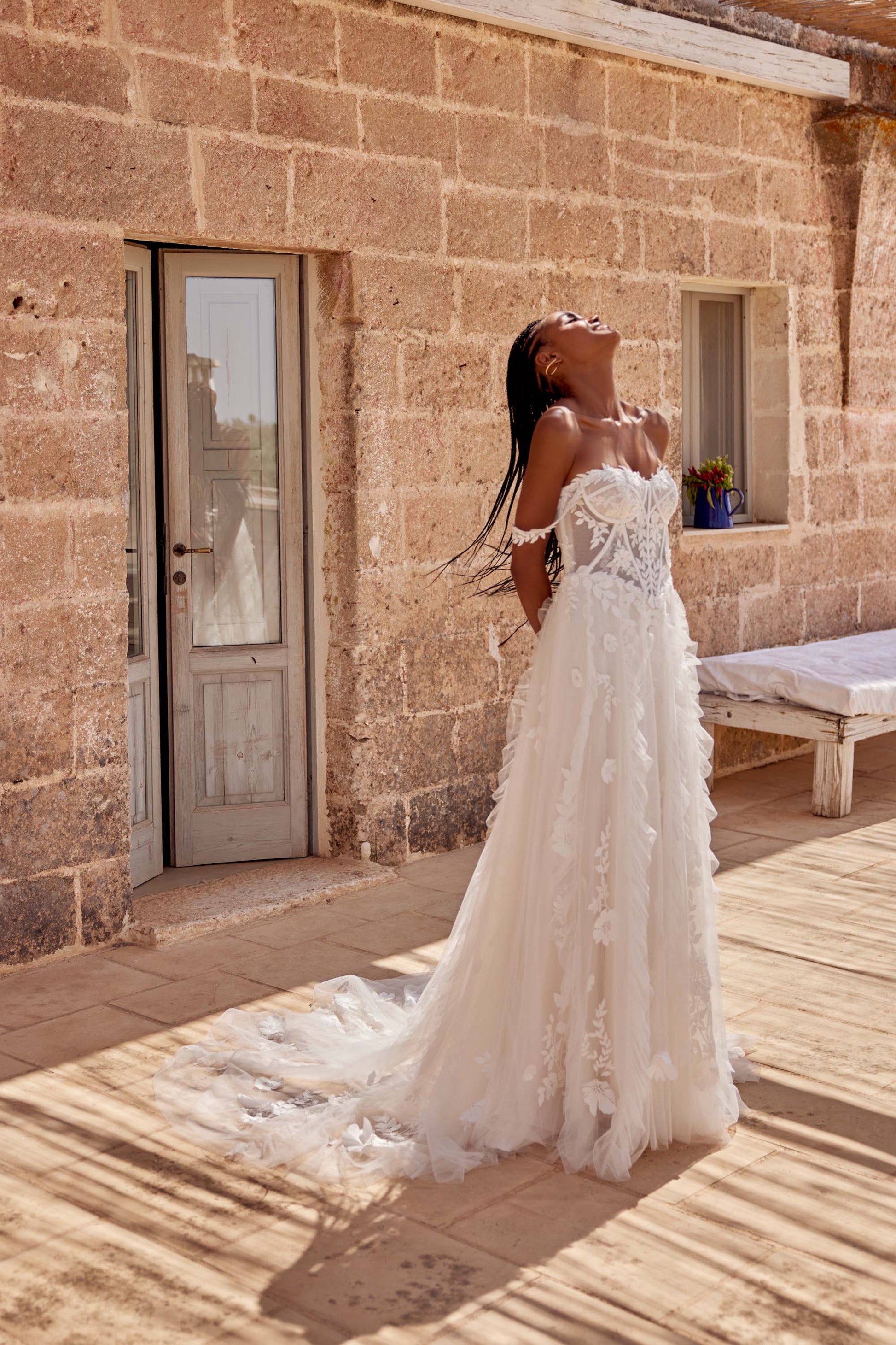Dress with Detachable Straps with Unlined Bodice and without Skirt Slit FABRIC : Sequined Lace Appliques, Jersey, English Net, Chantilly Lace, Tulle Options :
