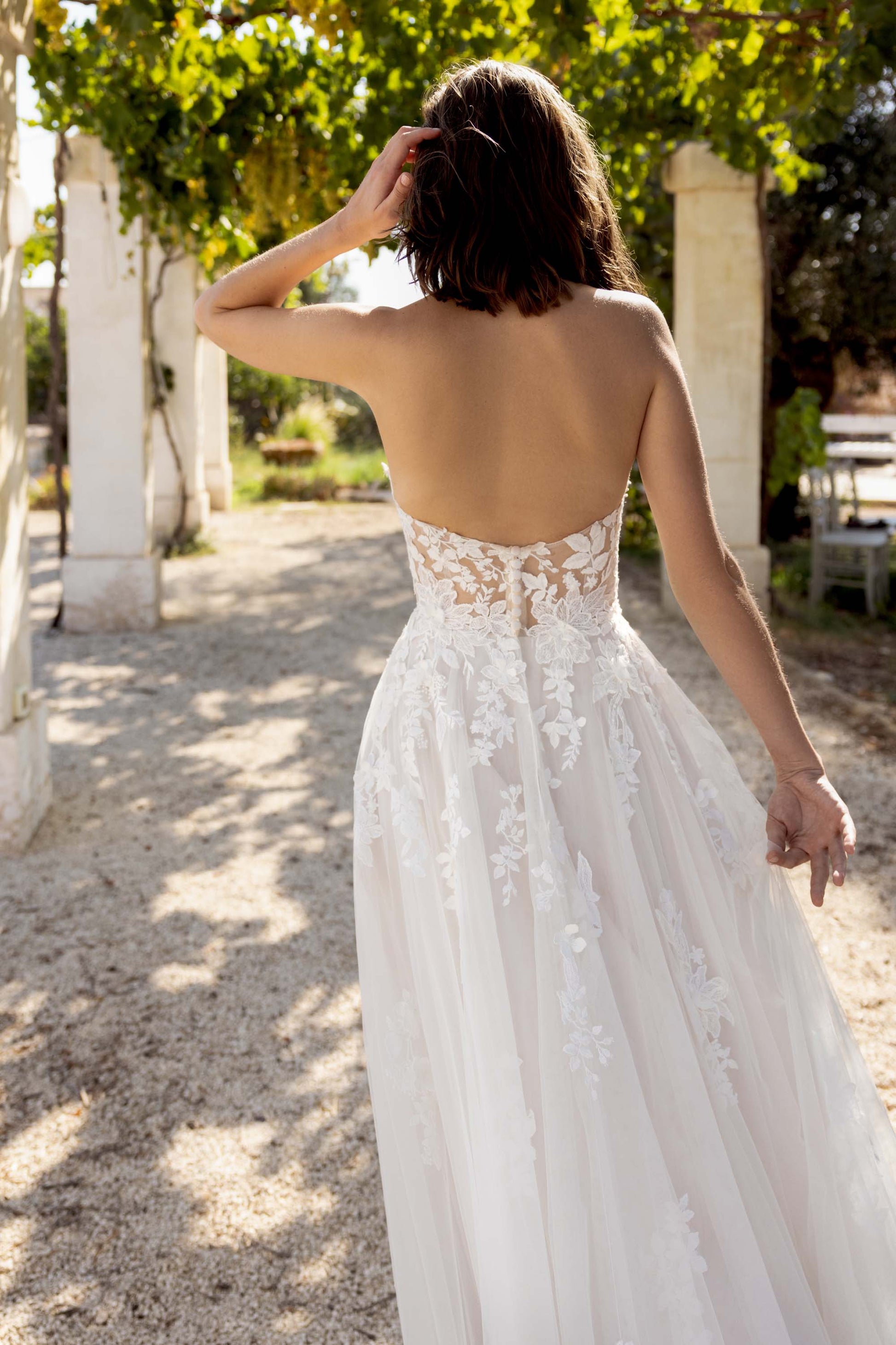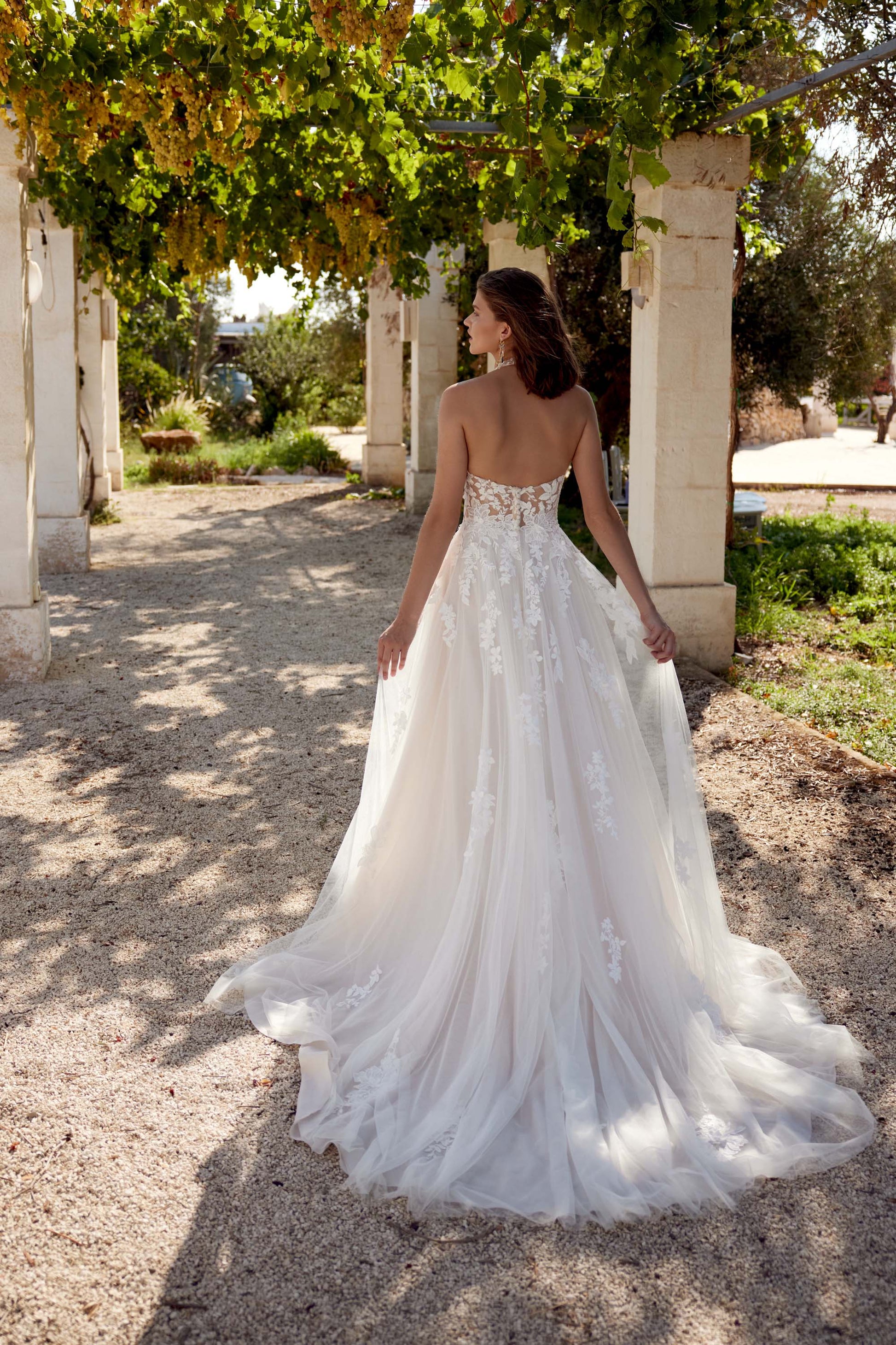 Dress with Bodice Lined in Sweetheart Shape FABRIC : Tulle, Cotton Lace Appliques Options : L