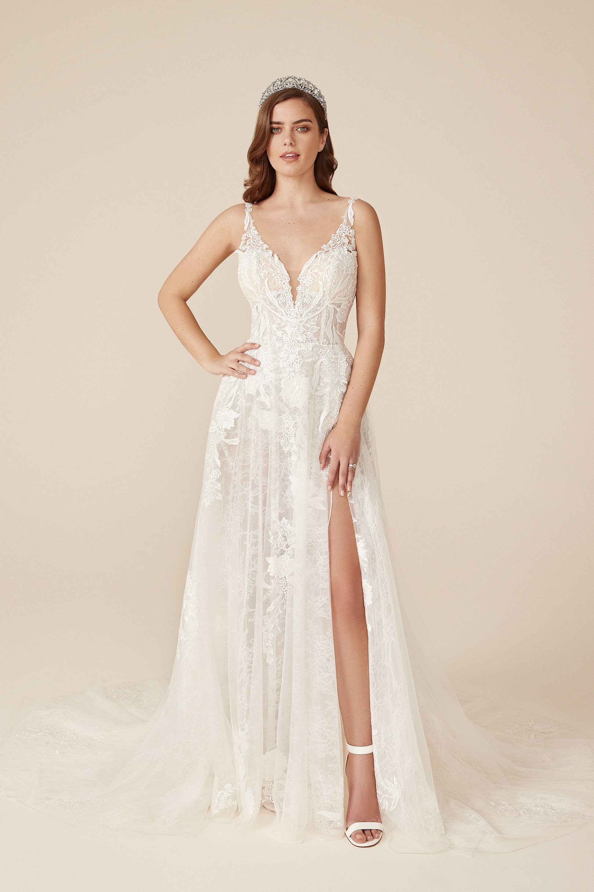 Dress with Floor Length Lined Skirt & Without Skirt Slit,  Fabric: Organza, Sequin Lace Appliques, Chantilly Lace