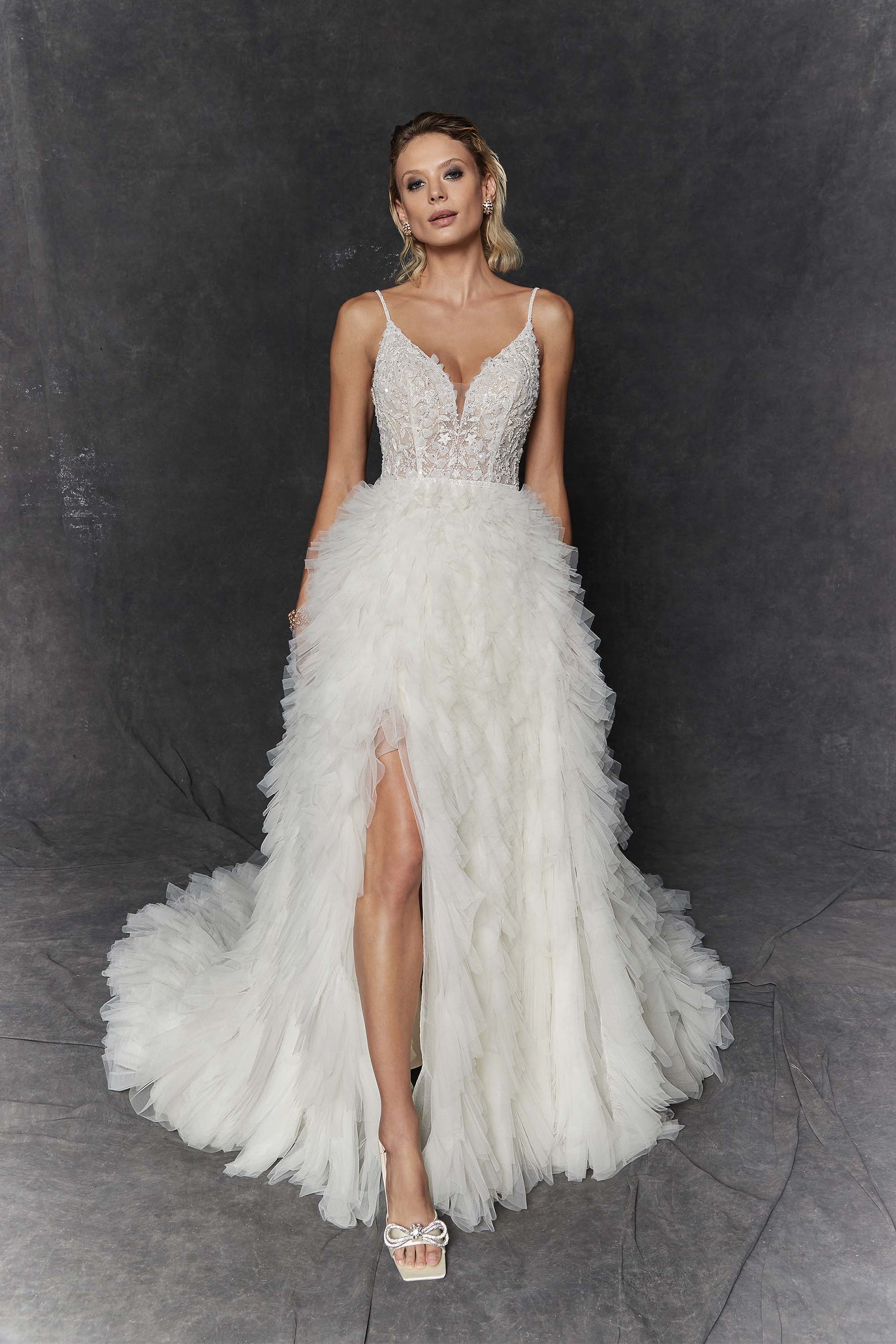 Dress with Skirt Slit Tulle, Sequin and Beaded Tulle, Glitter Tulle