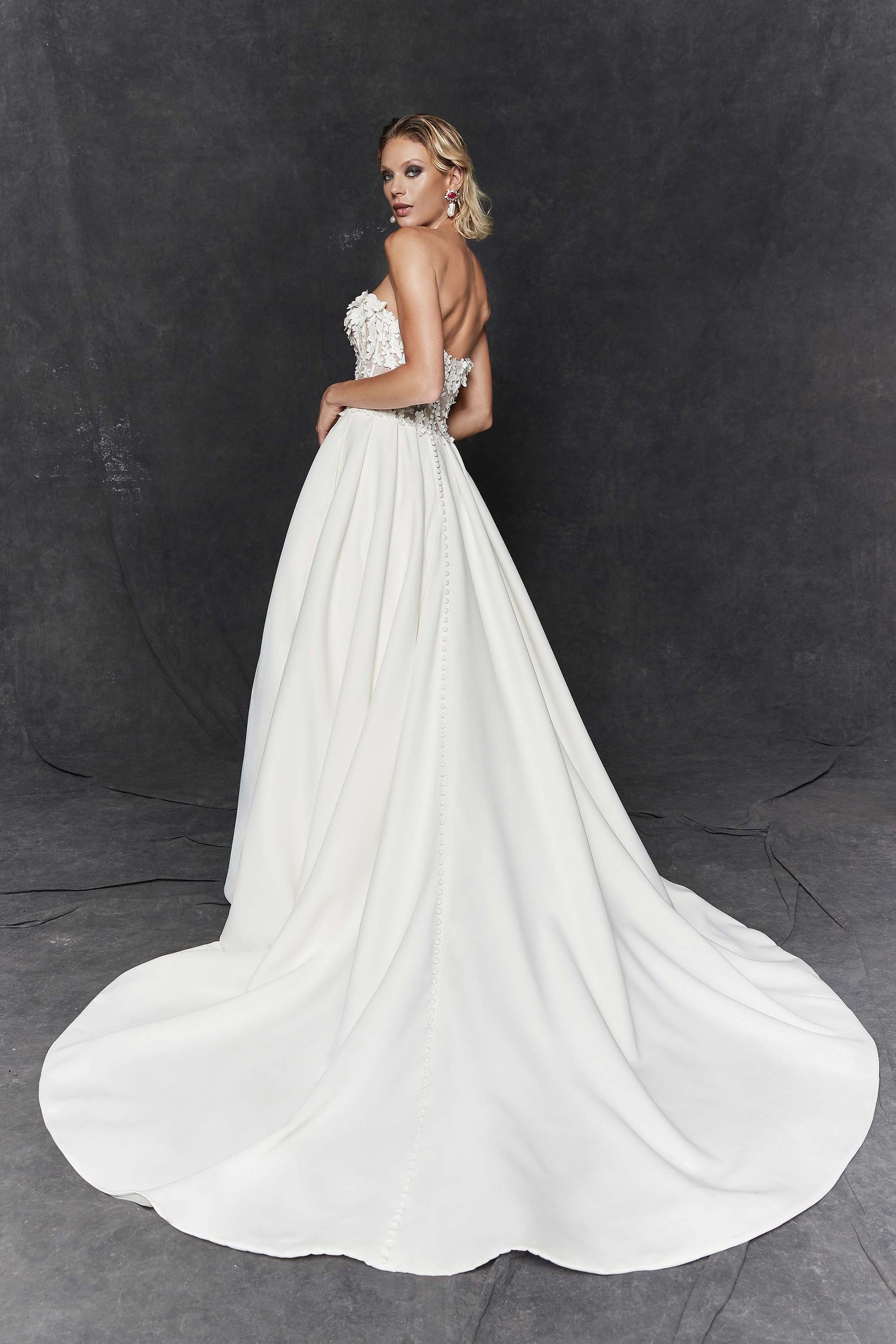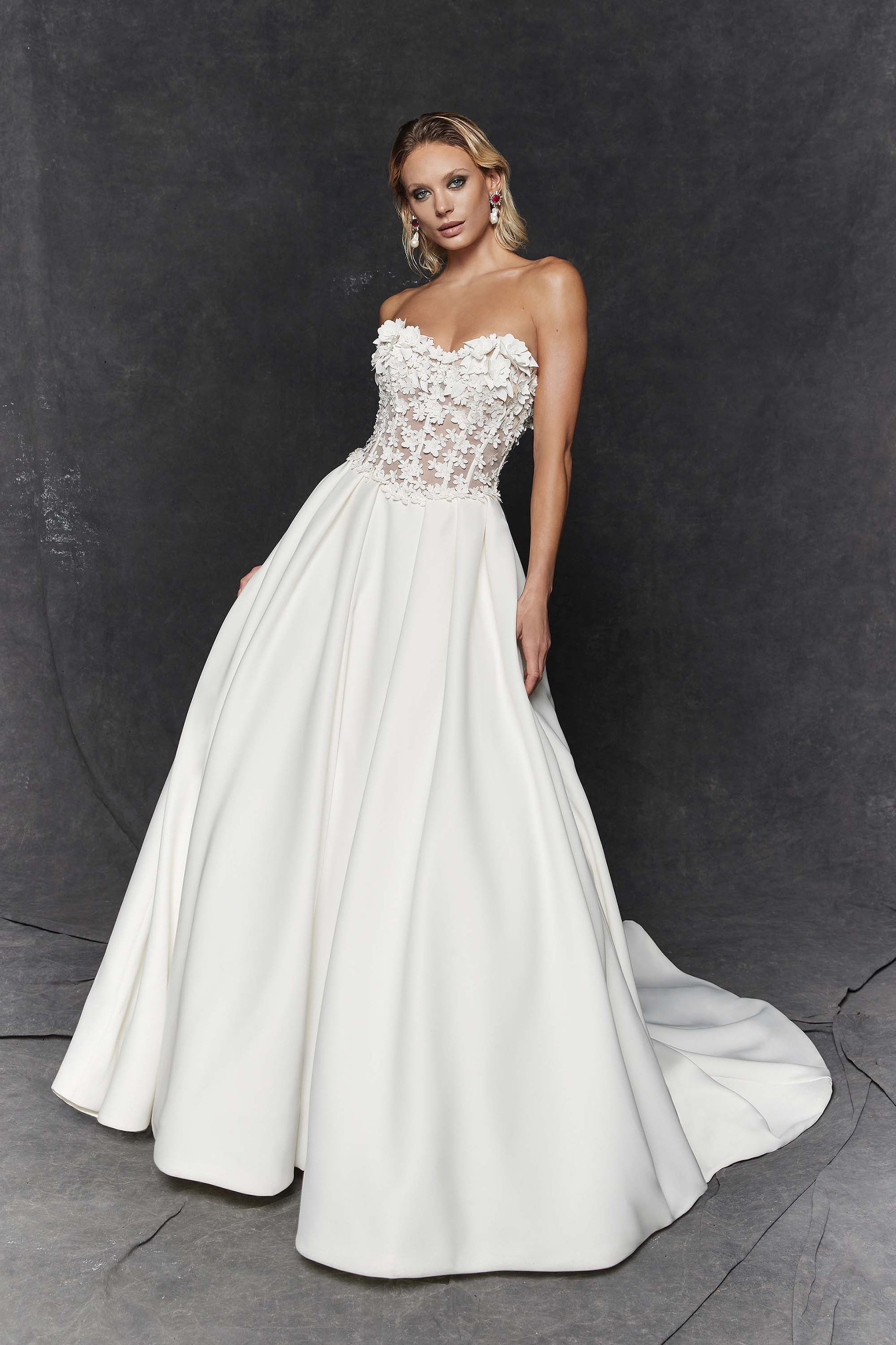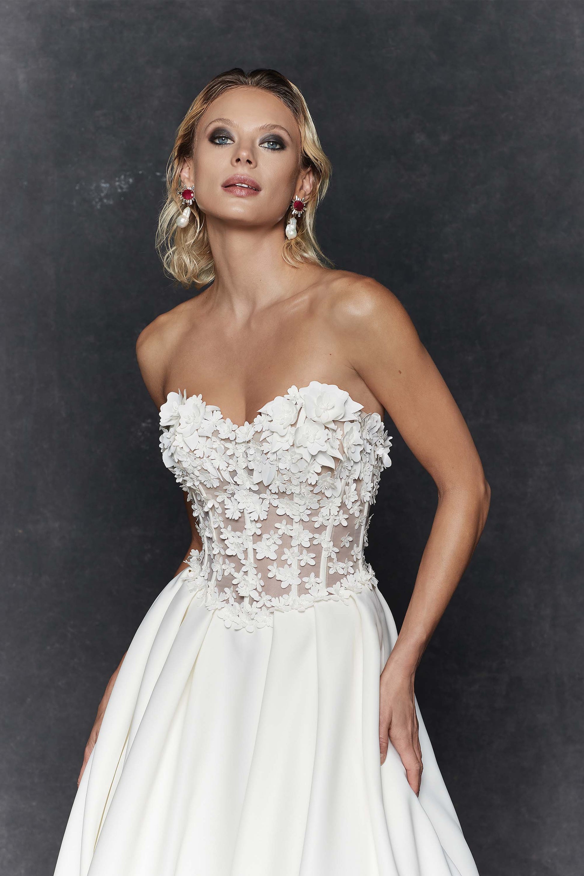 Dress with Unlined Bodice 3D beaded laser cut lace flowers, Satin