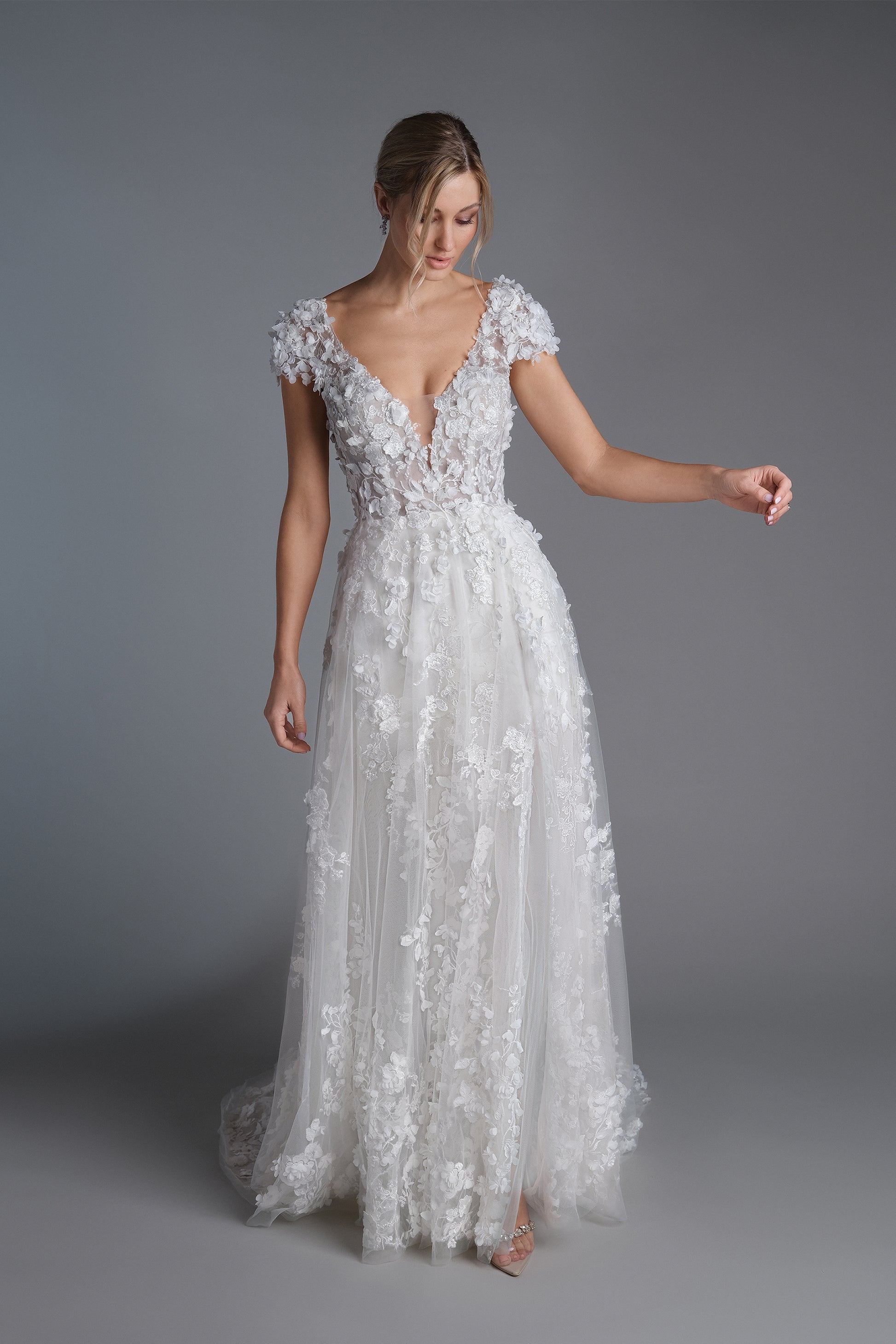 Floor Length Dress Without Skirt Slit,  Fabric: Jersey, 3D Sequin Lace Appliques, Tulle