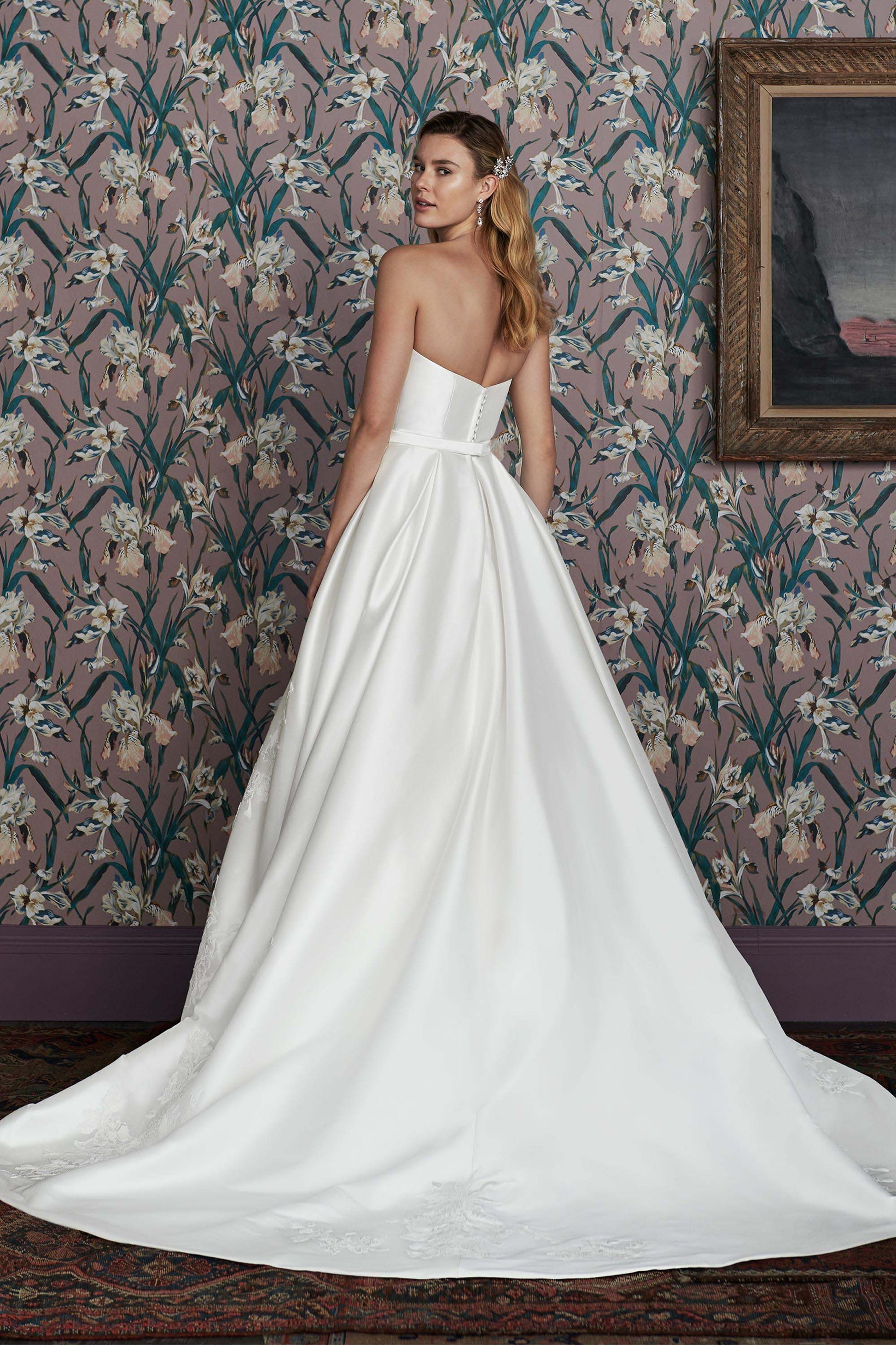 Dress Without Center Front Illusion Inset Lace Appliques, Stretch Mikado
