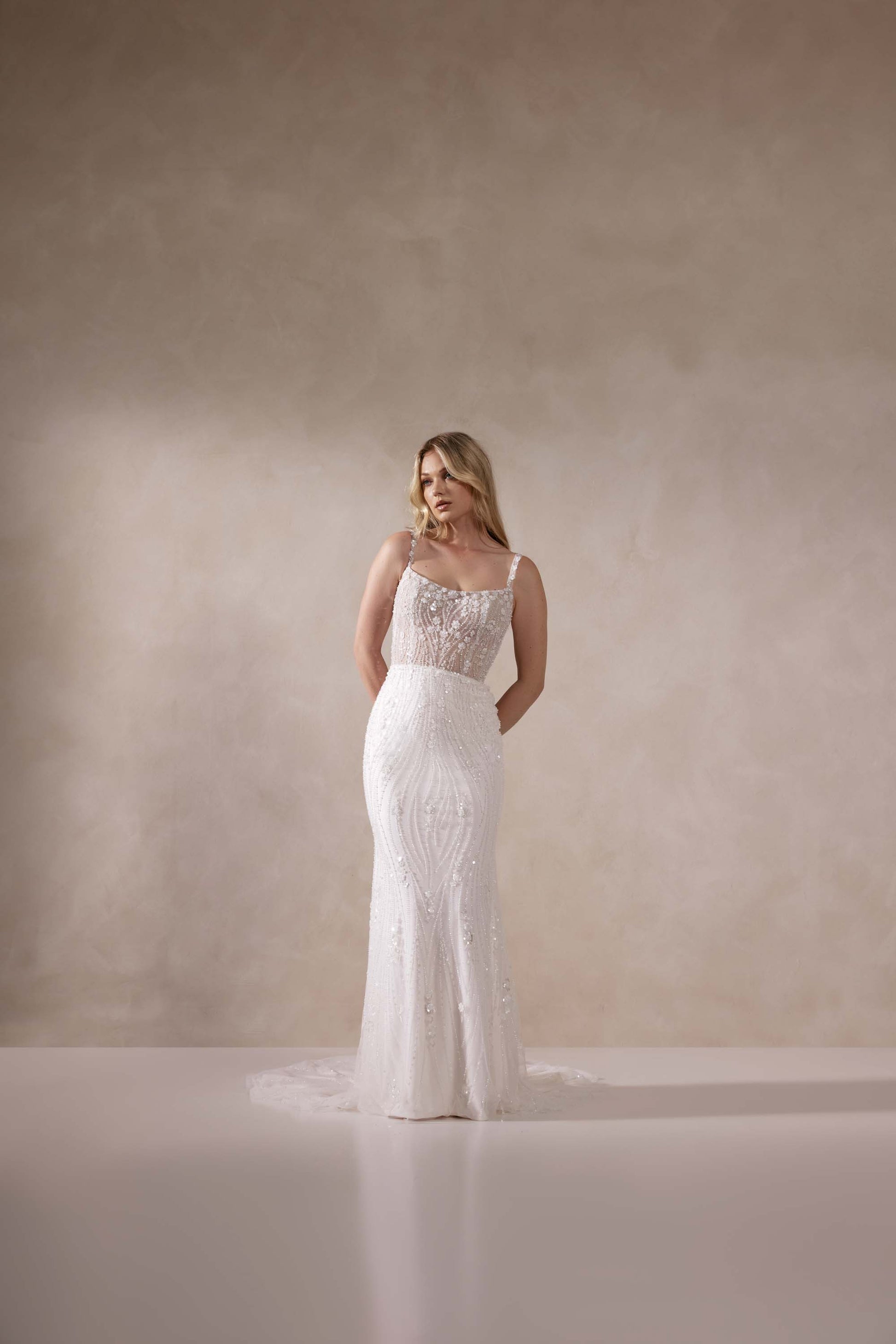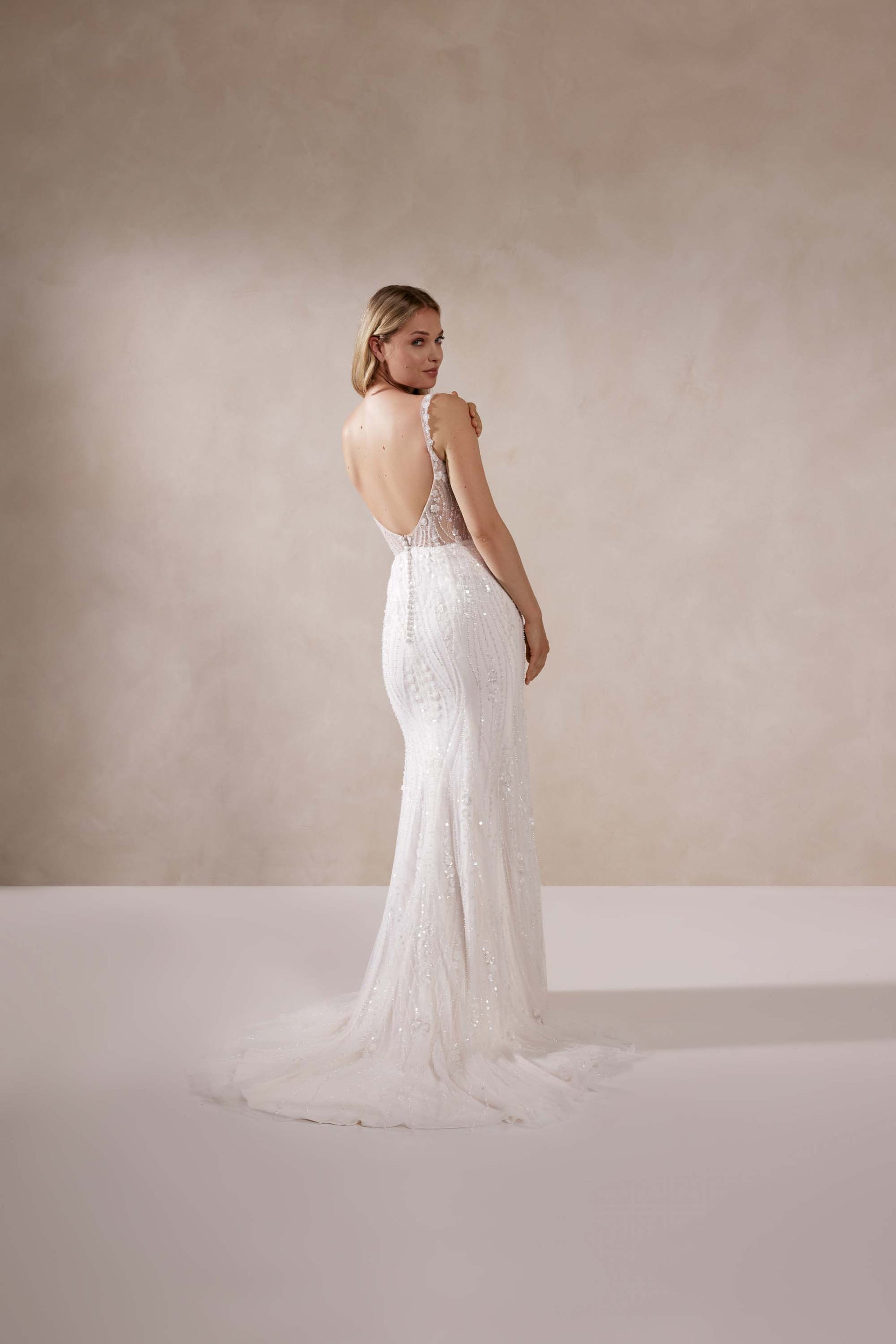 Dress with Unlined Bodice FABRIC : Jersey Lining, Paillettes, Pearl, Tulle, Beaded and Sequined Embroidery Options : L, PT