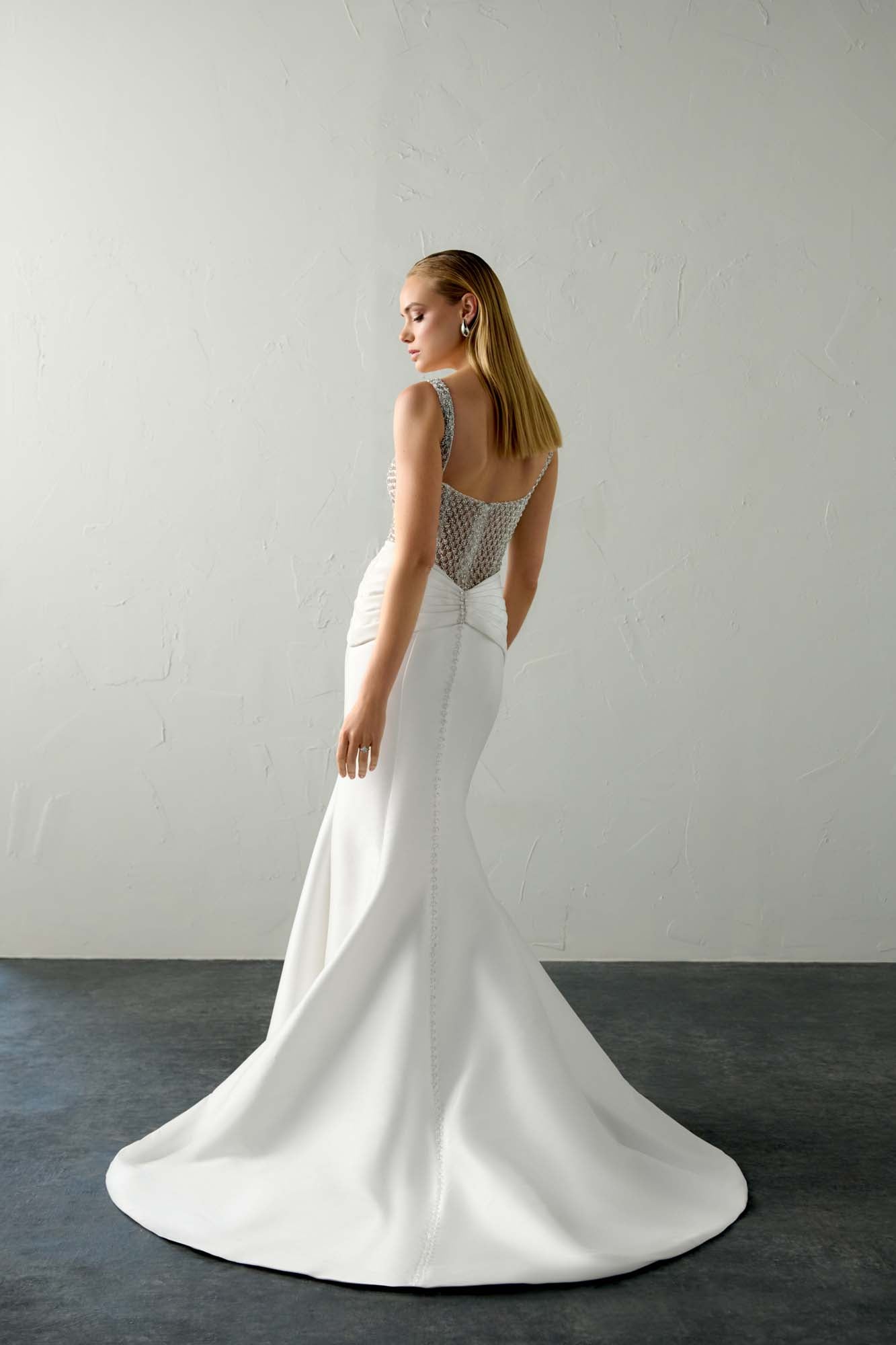 Dress with Unlined Bodice & Straps FABRICS : Tulle, Hard Tulle, Stretch Mikado, Tulle, Crystal Beading, Organza, Woven Lining OPTIONS : L, PT, U